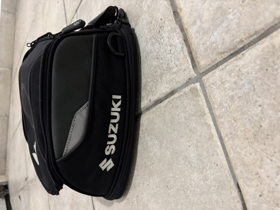 Prodajem suzuki tank torbu sa kopčom stara godinu dana. Velicina 5 litara sa mogucnoscu povecanja na 9 litara ima i protukišnu navlaku