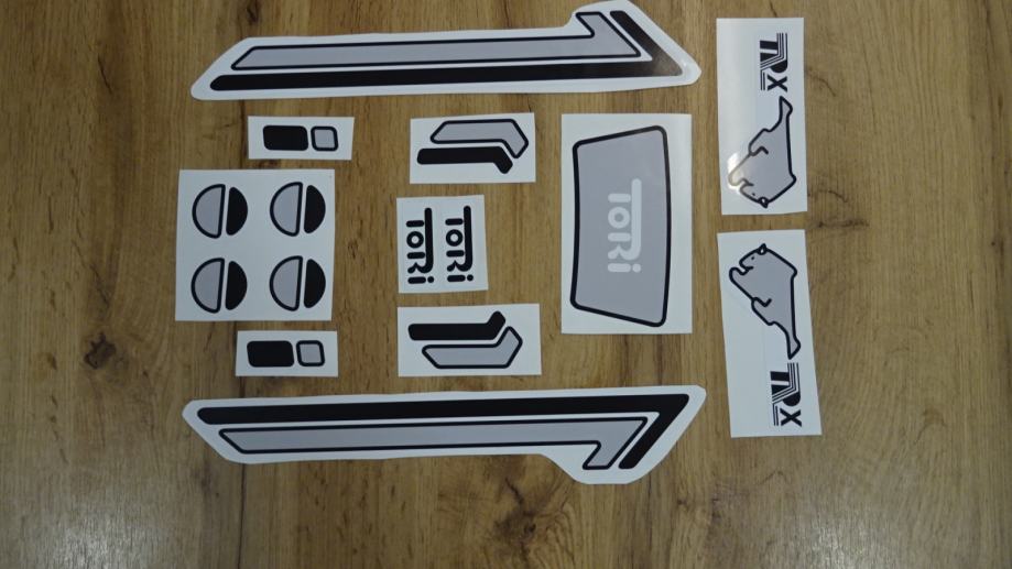 Komplet naljepnica za tomos TORI motor. Info na tel. 00386-68-177-526 (može besplatno Viber, Whattsupp) ili mail staralesina@gmail.com. Može se dovesti na relaciji Bregana-ZG-Kutina- Požega, ili se šalje poštom iz Hrvatske