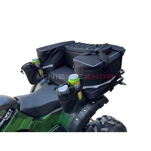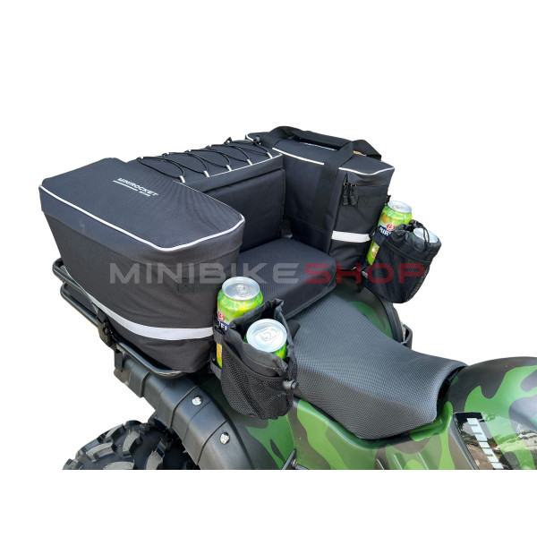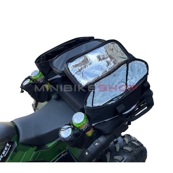Dva džepa ove torbe opremljena su aluminijskom folijom koja će vašu hranu ili piće ljeti hladiti, a zimi grijati nekoliko sati. ATV rashladna torba koristi se samo za hlađenje smrznutih pića i hrane i ne stavljati izravno led u nju.