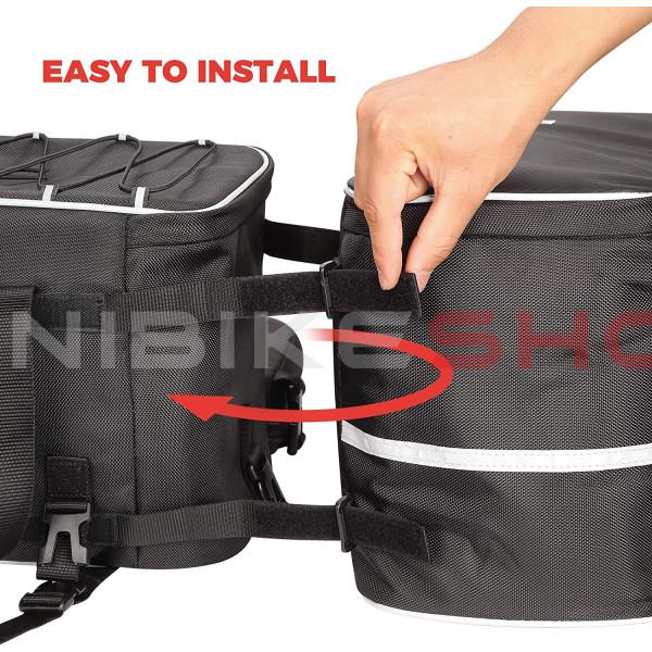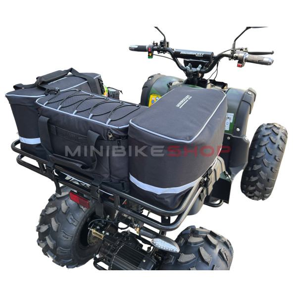 Posebno razvijena torba za dječji nosač quad bicikla u crnom, vodootpornim dizajnom. Dimenzije ove torbe imali smo precizno prilagođene većini naših većih ATV-a. Zahvaljujući genijalnom sustavu pričvršćivanja, svatko ga može pričvrstiti na svoj ATV (pričvršćivanje s nekoliko čičak kopči).