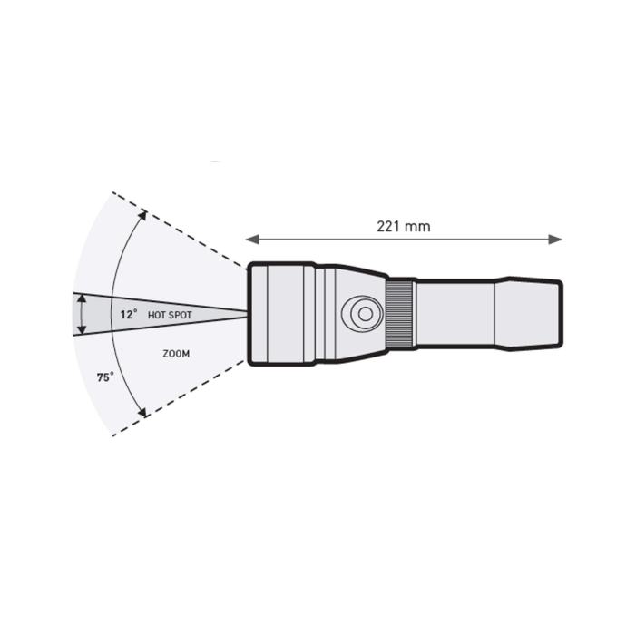 Lampa ima multifunkcionalni mehanički prekidač za podešavanje intenziteta svjetla i vizualni indikator baterije, što pomaže u praćenju stanja baterije tijekom ronjenja. Prekidač s dvostrukim sigurnosnim zaključavanjem sprječava slučajno uključivanje.