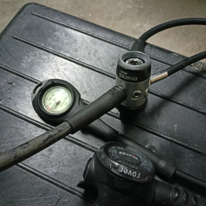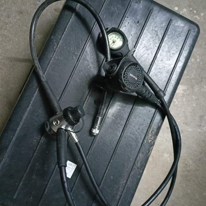 Oprema korištena svega dva puta osim jacketa koji je rabljen ali dobar i ispravan i regulatora jako malo korišten u odličnom stanju.
