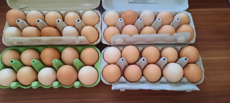 Prodajem jaja domaća iz slobodnog uzgoja. Idealna za izradu domaće tjestenine i rezanaca (lijepa žuta boja). Komad 20 centi - kutija 2,00 eura (10 komada).