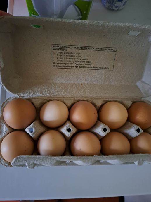 Prodaja domaćih jaja za 2,5 € (jedna kutija od 10 jaja). Isključivo na području Osijeka. Za više dogovora javiti se na kontakt broj.