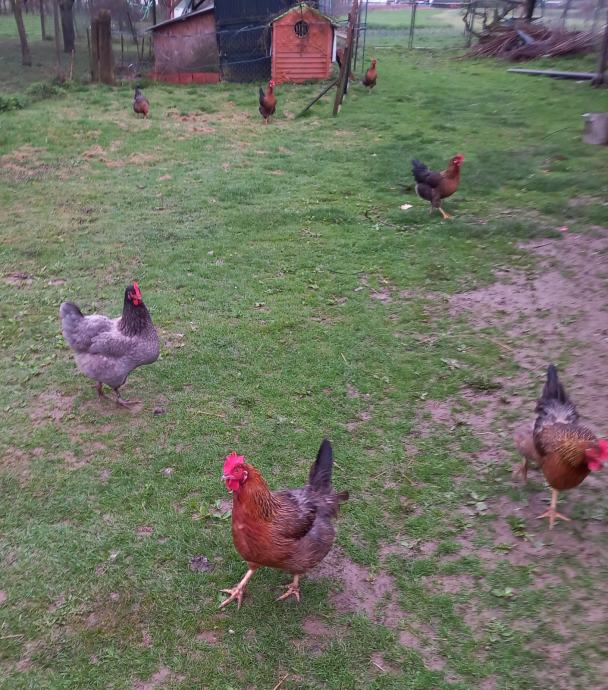 Pijetao medimurski u naranđastoj boji..koke medimurke u narandastoj i jarebicastoj boji a ima i par komada mjesanki..medimurke x astralop i nekoliko domacih kokosi ali vecina je medimurskih kokosi.