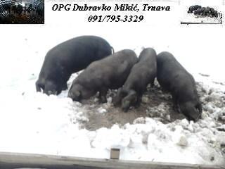 Prodajem mladog nerasta crne slavonske svinje. PB 617/53, star 12 mjeseci. Cijena je s PDV-om, prijepisom i rodovnikom 3.150 kn/kom. Moguć prijevoz u sve dijelove RH (vrlo povoljno do Zagreba ili dijelova Dalmacije) kao i kompenzacija ili zamjena za stočnu hranu i poljoprivredne strojeve.