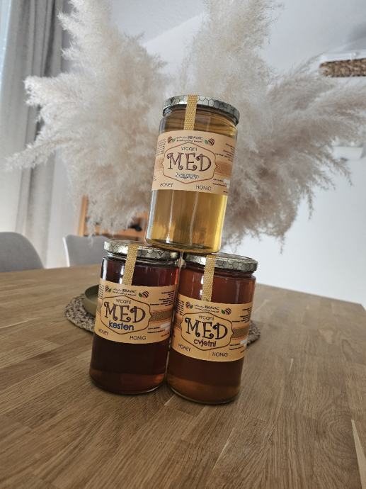 Med je certificiran od HPA s "Med hrvatskih pčelinjaka". Pčele se voze od Slavonije ( kesten i bagrem), Lika ( cvjetni).Pčelarstvo Bekavac
