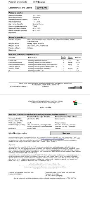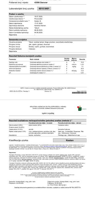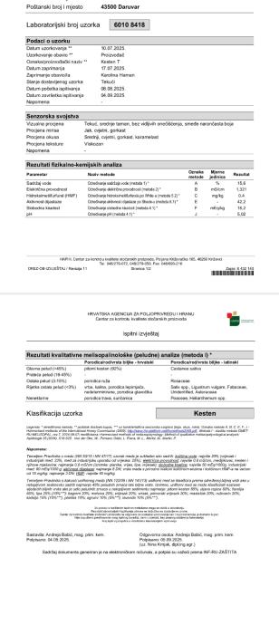 Napravljene su 3 analize meda u Hapih-u ( za svaku lokaciju)