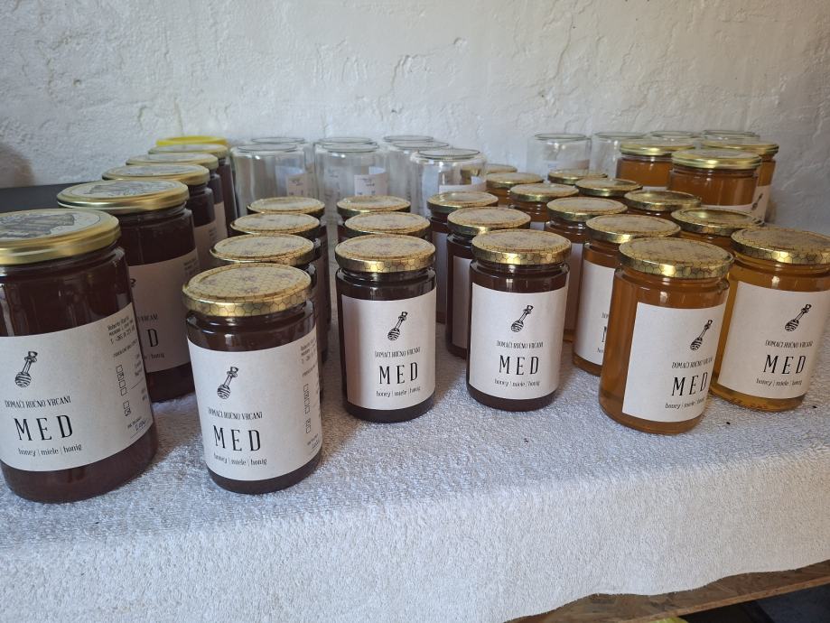 Domaći ručno vrcani med, bagrem, livada i bršljan.