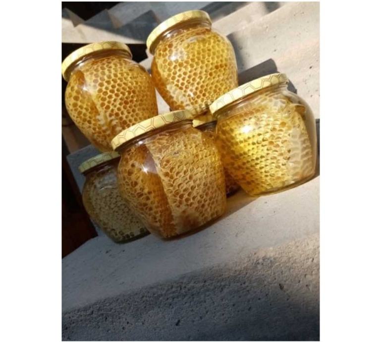 Posebnost ovog saća jest u tome što nije izrezivano iz ramova, već su ga pčele izgradile u teglicama i napunile medom. Sadržaj teglice u potpunosti je jestiv, a saće je djevičansko, dodatno zaliveno medom bagrema. Saće, tegla 1 kg amfora - 100 kn.