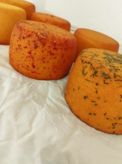 Domaći kuhani kravlji sir - sa začinima (vlasac, paprika) ili bez začina, dimljeni ili obični bijeli, cijena po komadu