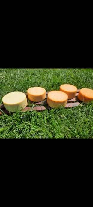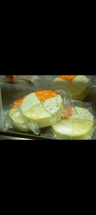 Ovčji kuhani sir, natur, dimljeni, s vlascem i s ljutom paprikom. Može i u kombinaciji. Kolut od 600g je 15€