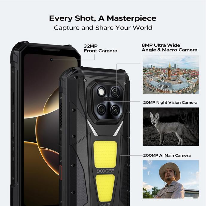 DOOGEE V MAX LR je više od smartphonea – to je profesionalni alat koji kombinira moćne tehničke specifikacije s praktičnim značajkama koje stvarno koristite na terenu. Laserski daljinomjer za precizna mjerenja, kampirska svjetla za osvjetljenje, night vision kamera za rad u mraku, ogromna baterija za višednevno izdrženje, i neuništiva konstrukcija koja sve to štiti – V MAX LR je konačno telefon koji razumije što znači raditi i živjeti izvan granica civilizacije.