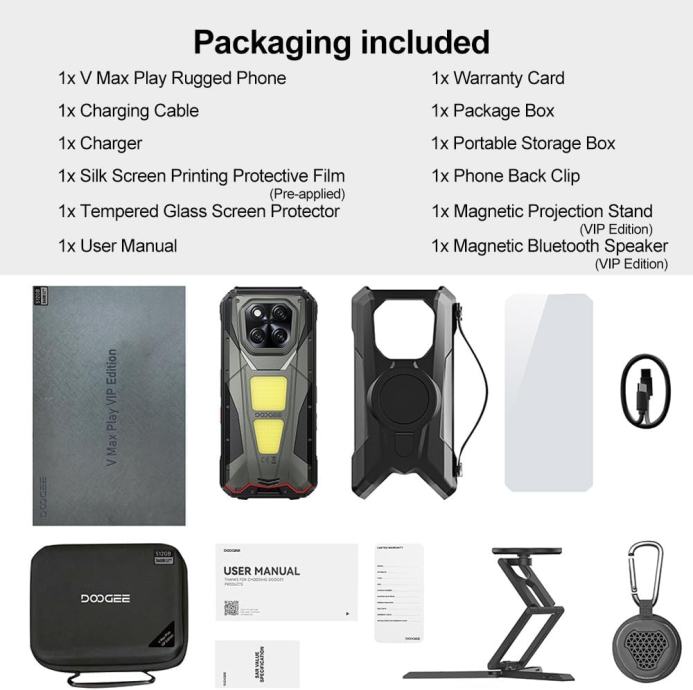 DOOGEE V Max Play nije samo još jedan rugged telefon – to je sveobuhvatno rješenje za profesionalce, avanturiste i sve koji traže pouzdan uređaj koji može više. Projektor, ogromna baterija, vrhunske kamere i neuništiva konstrukcija čine ga idealnim izborom za one koji odbijaju birati između izdržljivosti i funkcionalnosti. Bez obzira gdje vas život odvede, V Max Play je spreman pratiti vas – i projicirati vaša iskustva u velikom formatu.