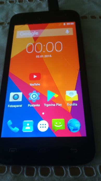 Doogee Voyager 2,DG 310.Napuklo staklo gore.Ne utjeće na rad mobitela.Sve radi ali treba nadogradnja androida za punu funkciju(youtube i sl.) pa tko zna složiti.