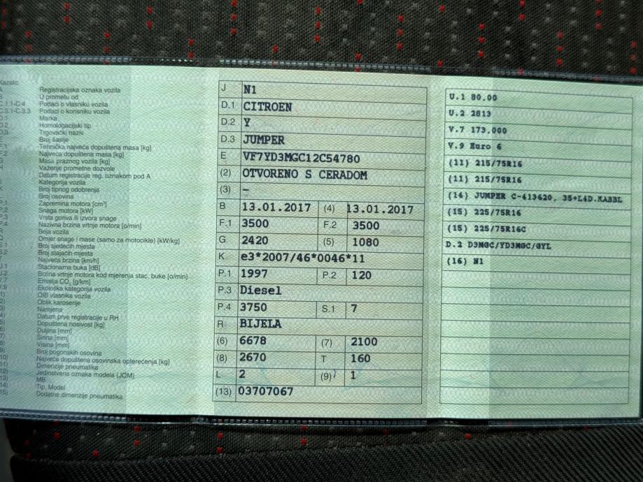 CITROEN JUMPER 2.0 N1 7 SJEDALA DUPLA KABINA SA CERADOM VOZILO NA IME, 2017 god.