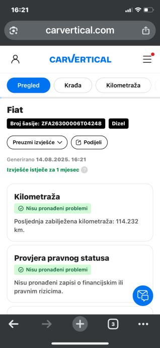 - Prijeđeni kilometri