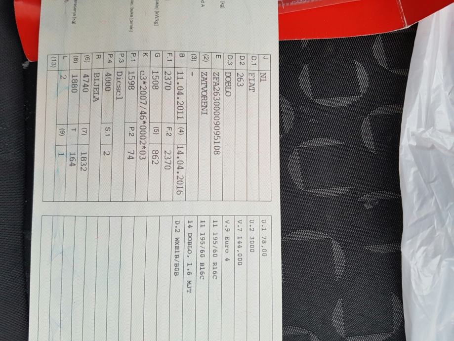 Fiat doblo 1.6 mjt DIESEL Prilika 5000e, 2011 god.