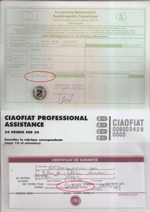 Na žalost , nas u Hrvatskoj, fiatov trgovac je 30.12.2011. napravio tzv. Tageszulassung (jednodnevnu registraciju) kako bi automobil dobio vlasničku i prometnu knjižicu i bio spreman za isporuku odmah.Zbog toga će u novim hrvatskim dokumentima stajati da je automobil u prometu od 30.12.2011. iako je stvarno u prometu od 2012. !!!