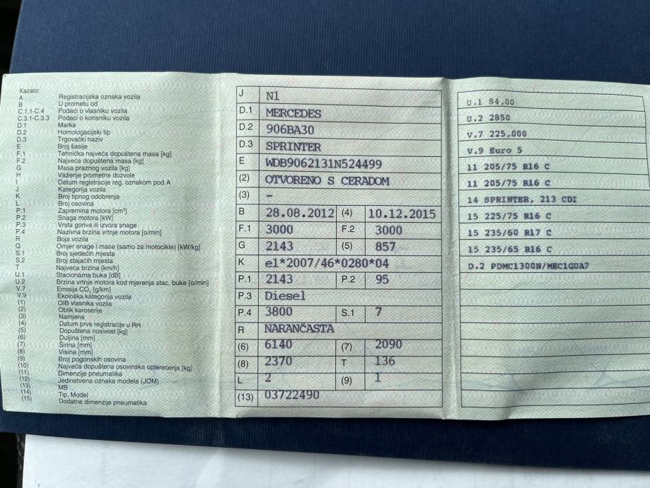 Prodajem rabljeno vozilo: Mercedes-Benz Sprinter 213 CDI