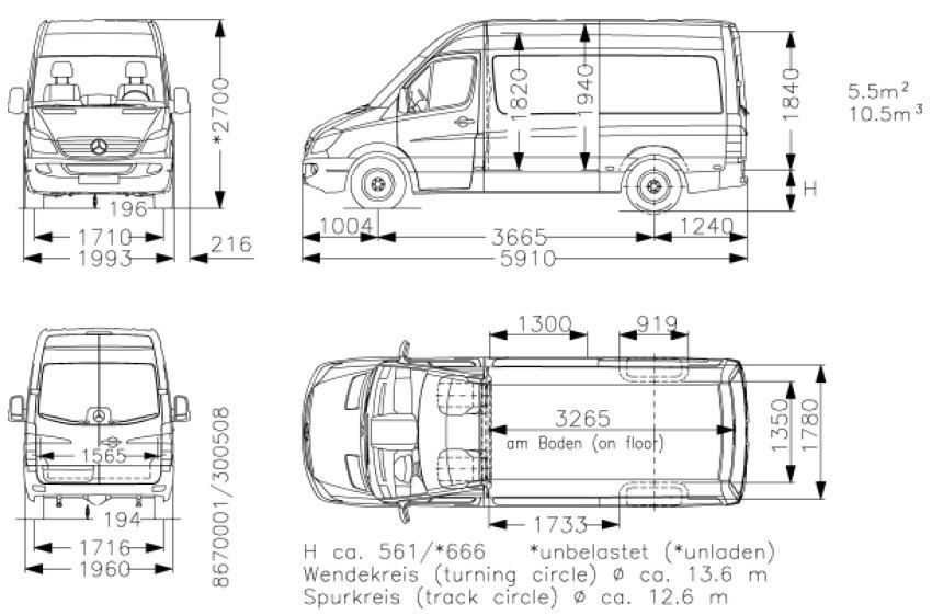 Dim. tovarnog prostora: 3265*1780*1940 10,5 m3