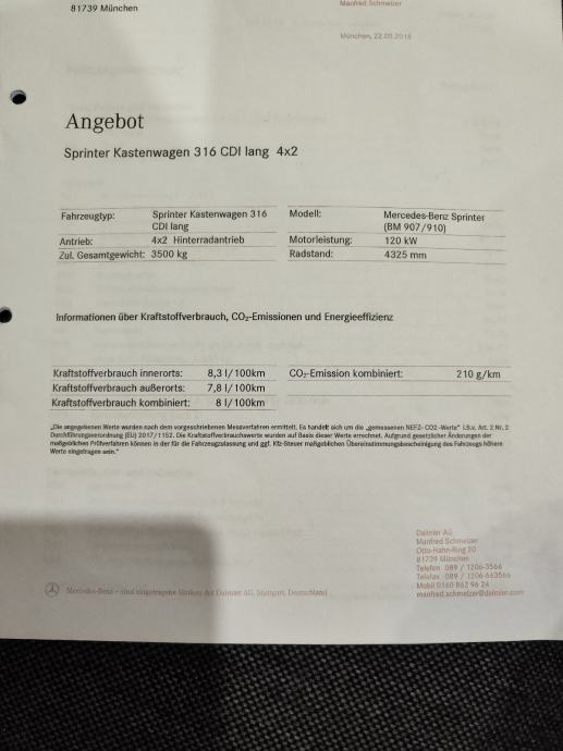 Prodajem Mercedes Sprinter 316 CDI (duga verzija, automatik, 120 kW / 163 KS), Drugi vlasnik!