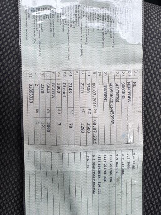 Prodajem rabljeno vozilo: Mercedes Sprinter 316 CDI