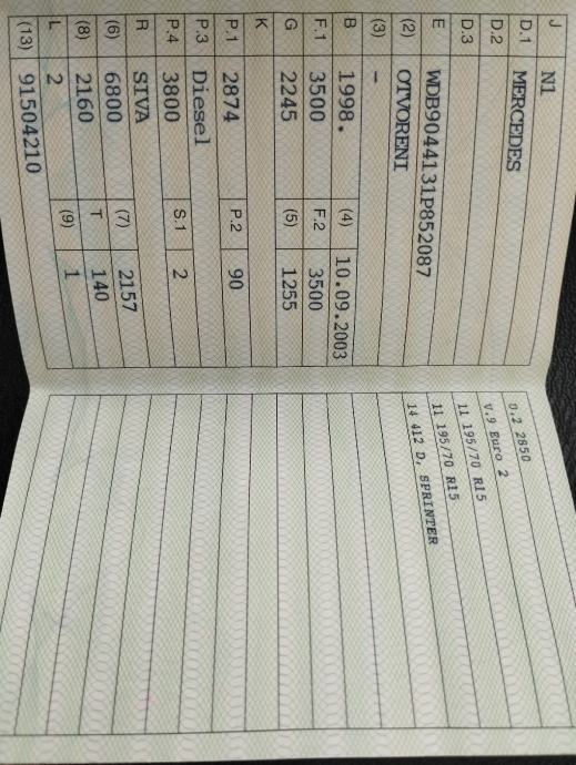 Prodajem rabljeno vozilo: MERCEDES SPRINTER 412D