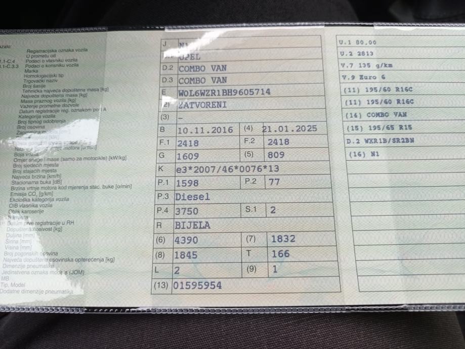 Opel Combo Van, 2016 god.