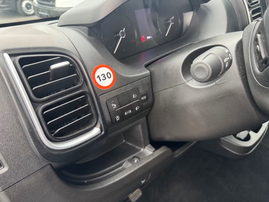 Zračni jastuk za suvozača, Zračni jastuk za vozača, Audio sustav: digitalni radio (DAB) s 5" zaslonom u boji i Bluetooth handsfree funkcijom, Vanjski retrovizor električno podesiv, desni, Black Box (Event Data Recorder, EDR), Putno računalo, Krovna digitalna antena (kratka), Stražnja parkirna pomoć akustična, Sustav pomoći u vožnji: inteligentni asistent brzine, Sustav pomoći u vožnji: senzor prepoznavanja umora, Sustav pomoći u vožnji: sustav automatskog kočenja u nuždi s prepoznavanjem pješaka i biciklista, Sustav pomoći u vožnji: asistent zadržavanja vozila u traci (s nadzorom ruba kolnika), Sustav pomoći u vožnji: prepoznavanje prometnih znakova, Alternator 180 A, Tempomat s ograničivačem brzine, Držači za piće sprijeda i pretinci za odlaganje, Stražnja krilna vrata bez ostakljenja (kut otvaranja 180 stupnjeva), Karoserija: teretno vozilo visoki krov standard, Spremnik goriva 90 l, Lakirana maska hladnjaka, Pregradna stijena tovarnog prostora zatvorena (bez prozora), Redizajnirani model, Motor 2,2 l – 103 kW Blue-HDI FAP KAT (2184 ccm), Međuosovinski razmak 3450 mm, Emisijska norma Euro 6e, Klizna vrata tovarnog/prostora za putnike desno, Elektronički upravljan servo upravljač, Presvlake sjedala: tkanina, Sjedala u kabini: dvostruko suvozačko sjedalo (uključujući automatski sigurnosni pojas), Pričvrsne ušice u tovarnom prostoru bočno, Najveća dopuštena masa 3,3 t