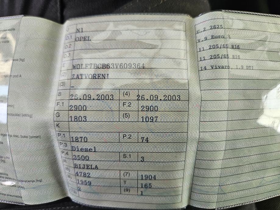 Opel Vivaro 1.9 DTI, HR vozilo, 215 000 km, 2003 god.