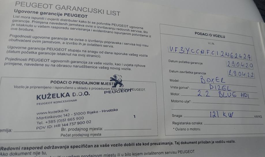 Prodajem rabljeno vozilo: Peugeot Boxer HDI 165