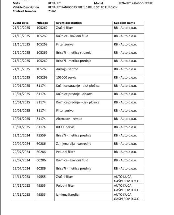 ZADNJI SERVIS 21/10/2025 105269 U RB AUTO