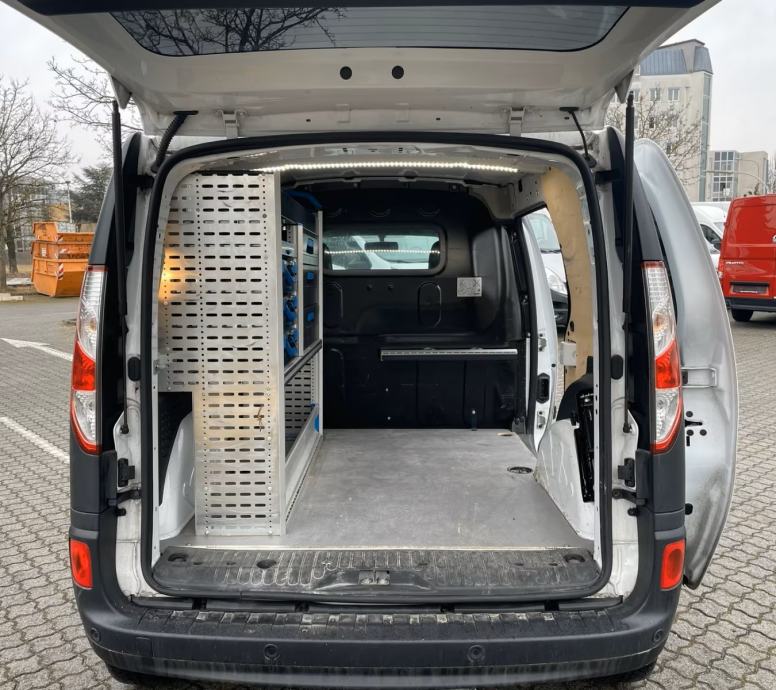 Renault Kangoo Rapid Basis 1.5 dCi, 70 kW / 95 KS, 1.461 cm³, Euro 6, teretno vozilo. Opremljen SORTIMO regalskim sustavom, klima uređajem, stražnjom parkirnom pomoći i handsfree sustavom. Vozilo iz prvog vlasništva.