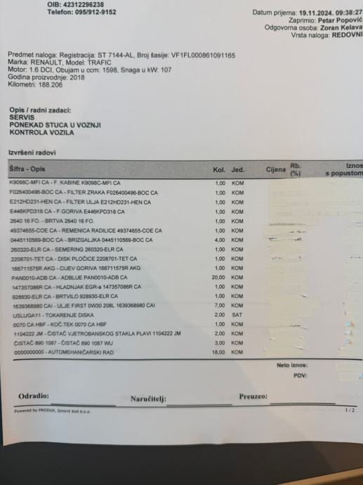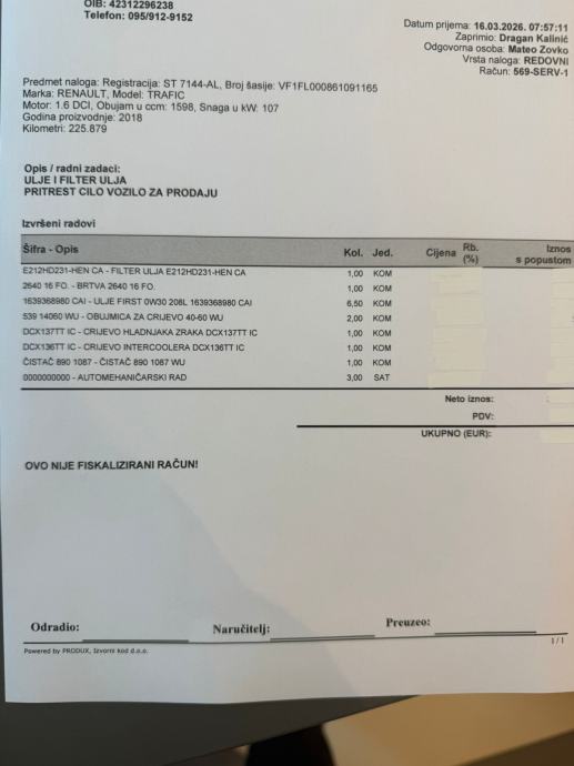 Prodajem rabljeno vozilo: Renault Trafic 1.6 DCI