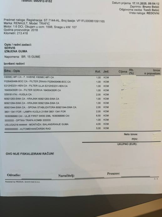 Popis ostalih obavljenih servisa su priloženi u oglasu.