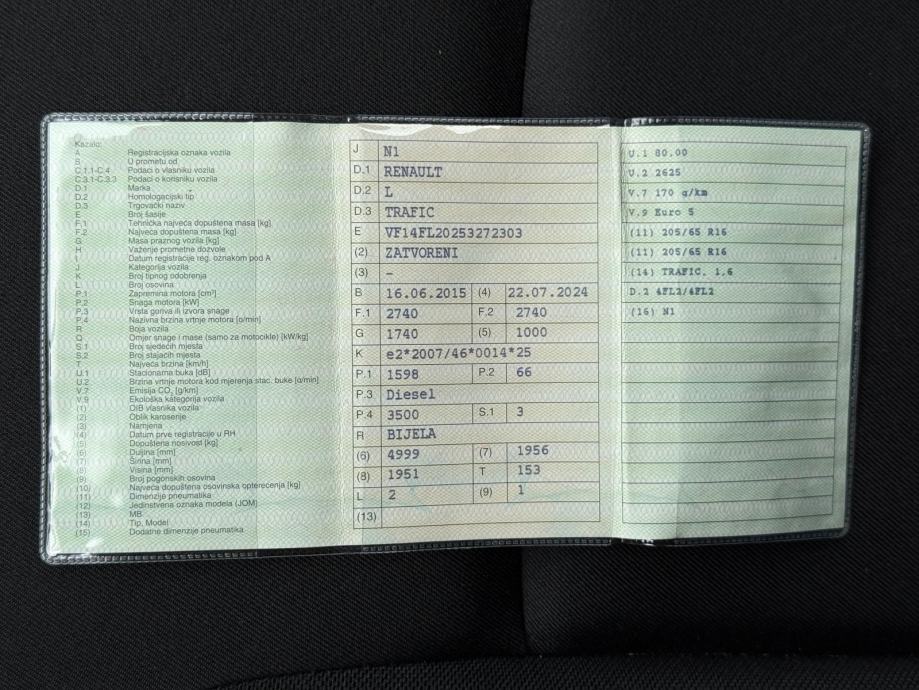 RENAULT TRAFIC 1.6DCI 3 SJEDALA I TOVARNI PROSTOR REG.DO 8/2026 NA IME, 2015 god.