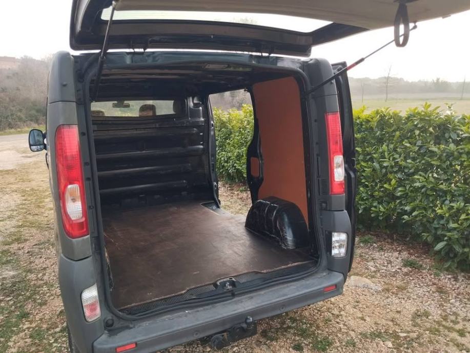 Renault Trafic 2.5 dci, 145 KS, 2010. godina sa 206600 km, najkraća i najniža izvedba H1 L1, automatic 6 brzina, manual klima, radio Pioneer SPH 20 dab sa 6 zvučnika i integriranim nosačem mobitela, FM i DAB digitalni radio, hands free, zadnja kamera, gps tvornička navigacija (trenutno isključena), tonirana stakla, tri sjedala, veliki stakleni prozor na pregradi, N1 registriran na ime, tehnički vrijedi do 11.3.27.osiguranje i asistencija za vuču u slučaju kvara, zaštita bonusa vozača, maglenke, kuka, izuzetno očuvan i ispravan, tempomat, 4 zračna jastuka, senzor za paljenje svjetla, ultrazvučna tvornička zaštita od glodavaca, alu felge, gume dobre, parkirni senzori, drveni pod u teretnom prostoru, kompletna obloga teretnog prostora itd. 7900 €.