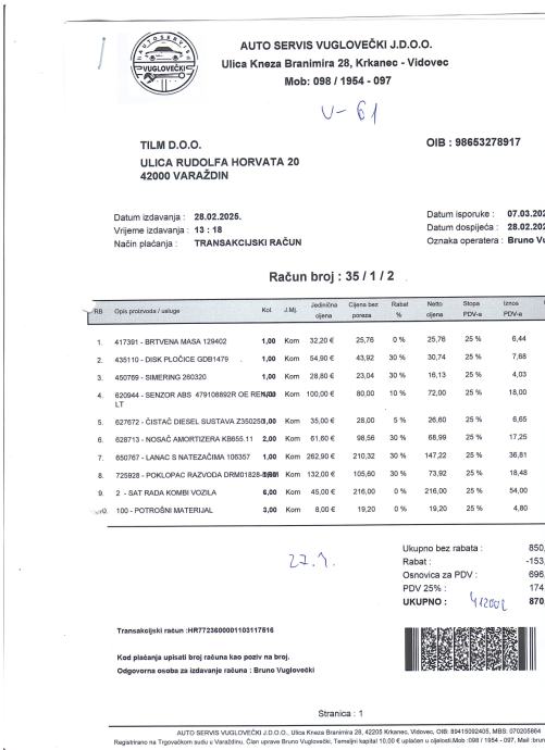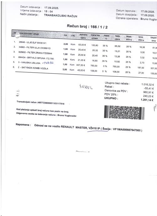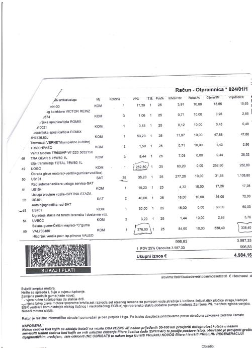 Vozilo je uredno održavano , oštećenje praga -zadnja cijena- prodaja zbog zatvaranja djelatnosti