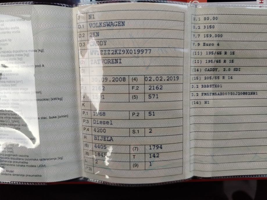 Prodajem rabljeno vozilo: VW CADDY 2.0 SDI