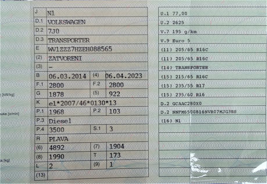 Za provjeru u bilo kojem pogledu prilažem broj šasije: WV1ZZZ7HZEH088565.