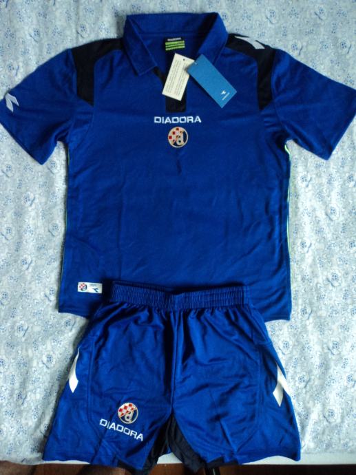 Original domaći plavi dres dinama marke diadora, potpuno nov nekorišten, zapakiran u kutiji, u kompletu se dobije dres sa gaćicama, dječja XL veličina 154 cm