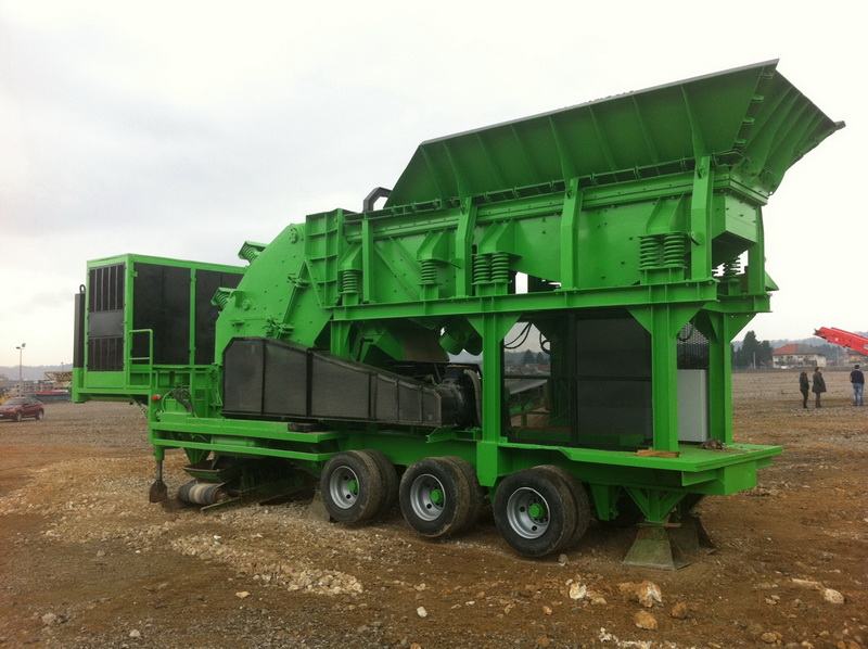 Opis: Diesel-elektro rotaciona drobilica COMEC PU 110.100 s 4 grede, traka za jalovinu,poluprikolica PAVELLI - 3 osovine, novi