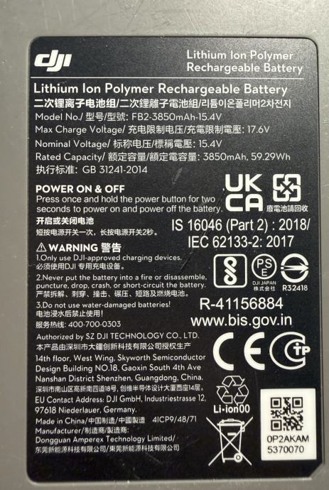 DJI Lithium Ion Polymer Rechargeable Battery, punjeno desetak puta. Razlog prodaje: prelazak na novi model.