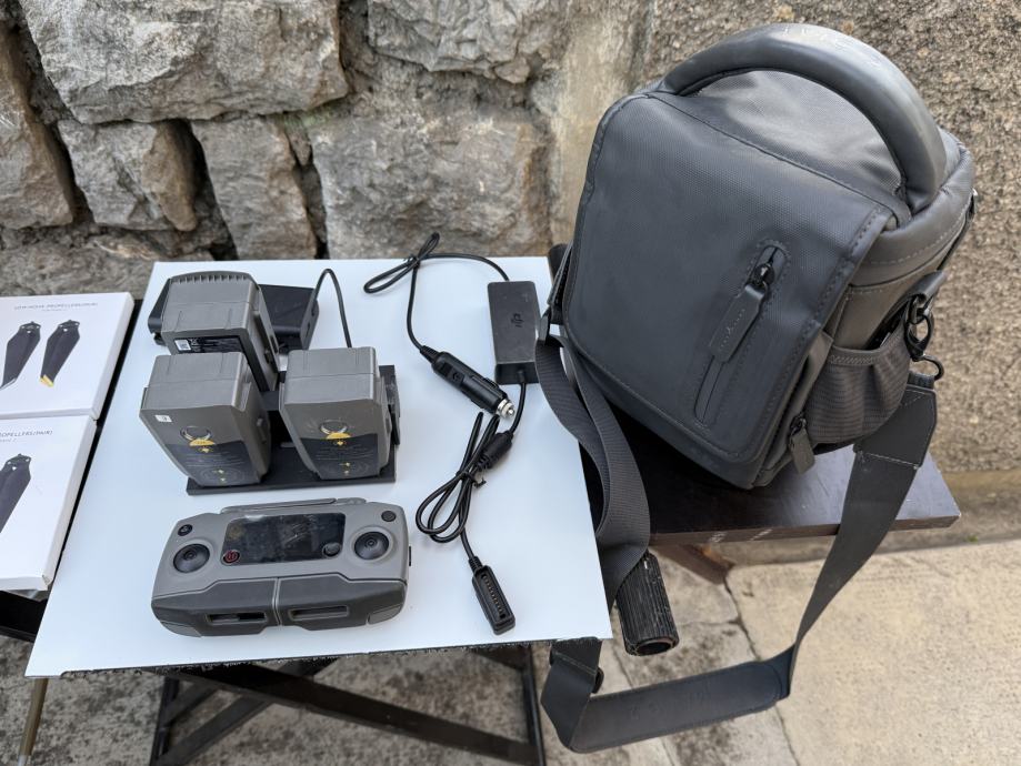 Uz kompletnu opremu FLY MORE COMBO ( 3 baterije, punjač za 4 baterije, auto-punjač), dajem i dva potpuno nova paketa low noise propelera te torbicu za njega koju sam naknadno kupio.