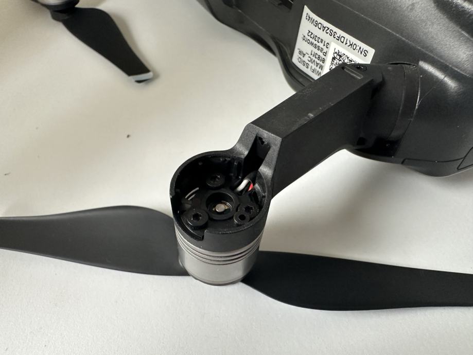 Nedostaje poklopac/noga za stražnji desni motor (vidi fotografije) - ima za kupiti online za 10-ak eura, ali nije nužan. Problem može biti zbog ulaska vode u motor.