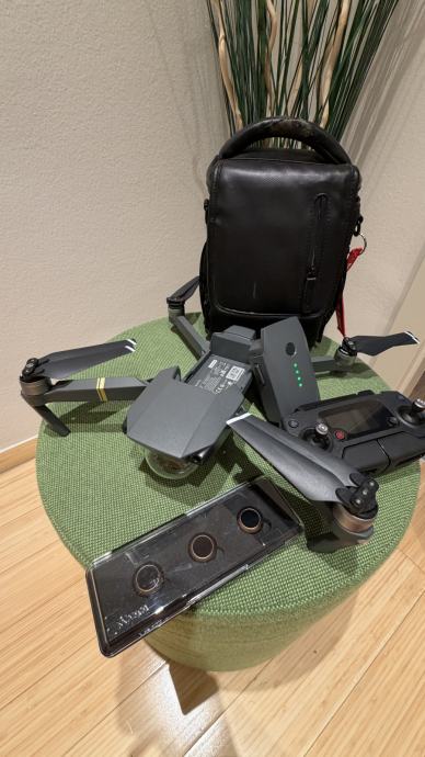 DJI Mavic Pro sa svom opremom iz Fly more combo paketa. Korišten, servisiran. Jedna ispravna baterija, dvije neispravne (jedna bricked). Dron ispravan, sve radi. Kontroler i svi dodatni kablovi u paketu.
