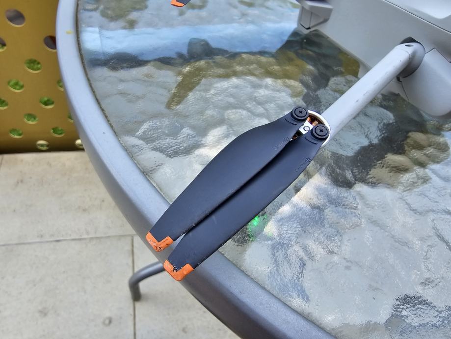 Dron nije nikad pao na tlo, ali sam par puta malo posijekao krosnje drveta :). Zato sam i poslikao svaki propeler zasebno.