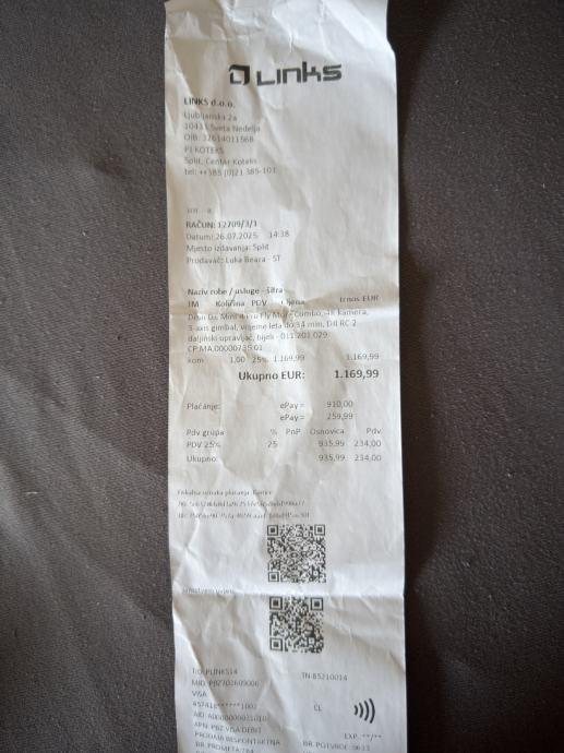 Prodajem navedeni dron, kupljen 26.07.2025. u Linksa.