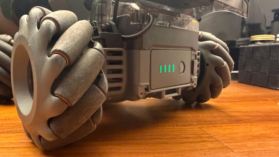 Prilagođeni M3508I motor ima integrirani FOC ESC i isporučuje moment do 250 mN·m. Linearni Hall senzori omogućuju preciznu kontrolu prednjeg ovjesa s pogonom na sva četiri kotača. Svaki od četiri Mecanum kotača ima 12 valjaka, što RoboMasteru S1 omogućuje kretanje u svim smjerovima.